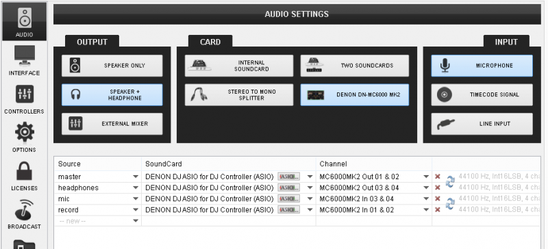 The Denon MC6000MKII offers 3 modes for the USB Audio Inputs selected by the switcher (65) at the rear side of the unit. The modes can be selected/switched without re-launching VirtualDJ or power cycling the unit.