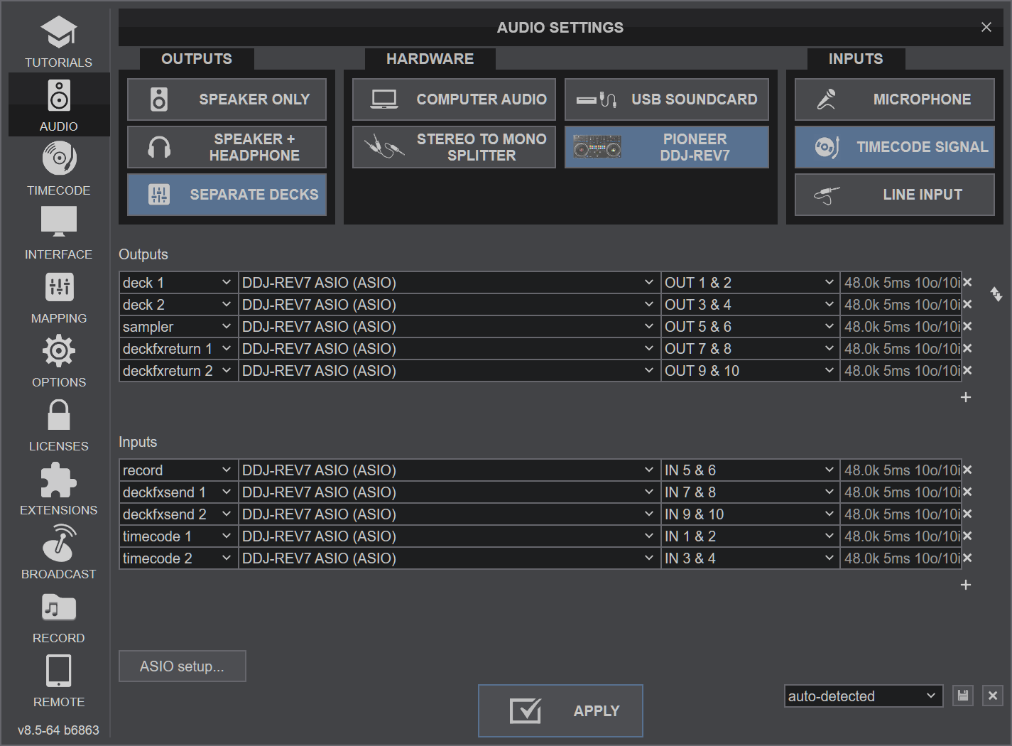 Then click the "TIMECODE SIGNAL" button, and finally the APPLY button.