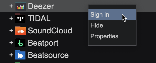 You can now use the root Deezer folder to search their catalog directly from the VirtualDJ search bar. Expanding the Deezer folder using the button will also display your saved Deezer playlists.