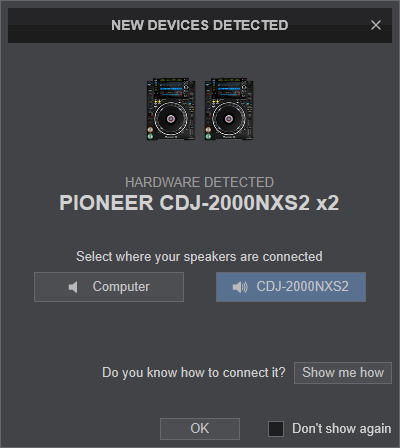 CDJ-2000NXS2 (or your own CDJ's model) has a pre-defined Audio setup and a special button in the AUDIO tab of Config to provide that. Alternative Audio setups can be applied in the same window.