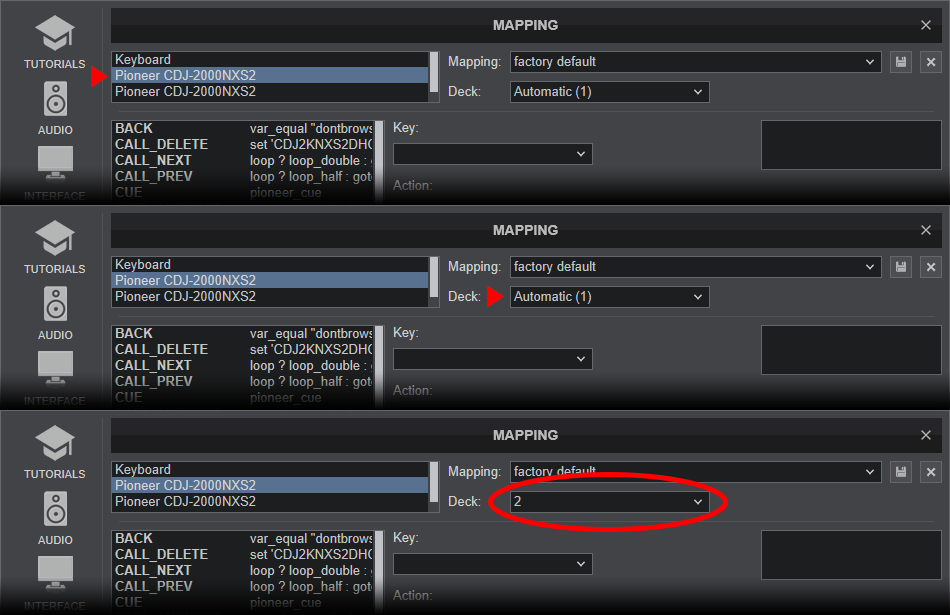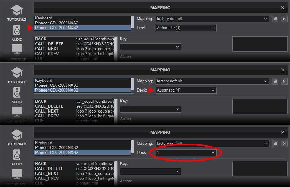 CDJ-2000NXS2 (or your own CDJ's model) should be visible in the CONTROLLERS tab of Config and the “factory default” should be available/selected from the Mappings drop-down list.