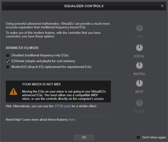 Please note that since you are not using a MIDI capable mixer you won't be able to control stems directly from your mixer.