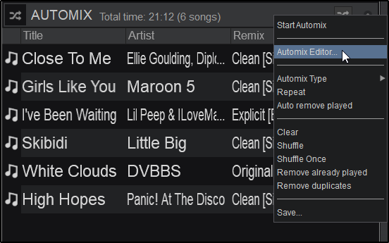 - Open the Automix Editor by clicking on the Options button in the Automix section of the SideView.
