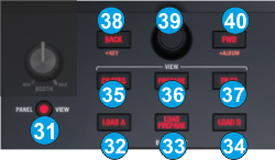 - PANEL VIEW. Press this button to open/close the SideView of VirtualDJ 8 Browser. Hold SHIFT down and then press this button to cycle through the available center mixer panels of the Default VirtualDJ GUI (MIXER, VIDEO, SCRATCH and MASTER)