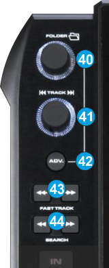 ADV. Press this button to enter the Advanced Browser mode. In this mode (led will be lit), both FOLDER and TRACK encoders will control the Sideview List of the Browser and both their leds will be lit. Hold TAP(S) down and then press this button to enter the Prelisten mode. In this mode (led will blink), both FOLDER and TRACK encoders will offer prelisten controls and their leds will blink.