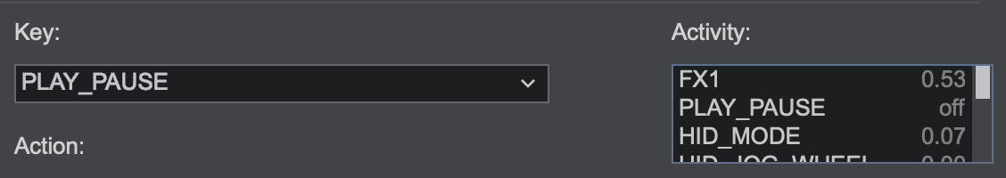 - MIDI ACTIVITY - Any button, dial or slider touched on the controller will appear in this window. Clicking on it will populate the KEY field.