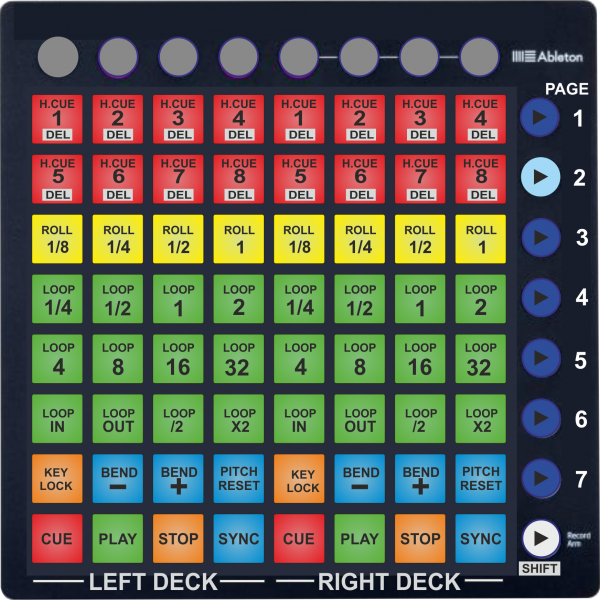 Press the 2nd Vertical round button to select the Deck Controls page (led will become cyan).