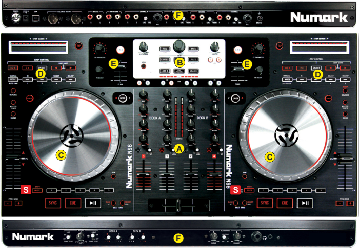 S. SHIFT. Press and hold this button to access secondary functions of other controls on the Numark NS6
