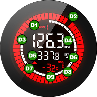 Indicates the track's position in time, starting with an empty circle and ending to a full circle when track reaches its end. The white circle will start blink when track reaches near the end of the track