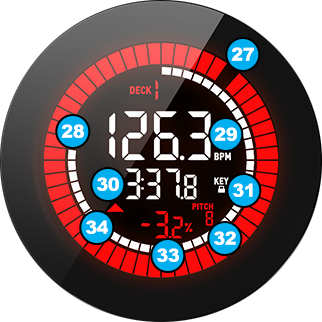 RED RING - VINYL ROTATION: Indicates the position of the software jogwheel - shows rotation. You can switch rotation behavior from VirtualDJ Settings RPM between 33 RPM, 45RPM and 4 Beats Per Round.