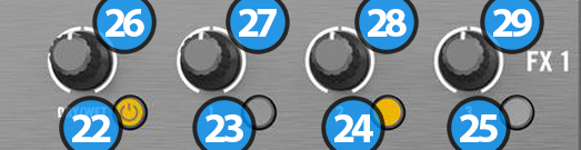 You can also activate/deactivate the filter by using the DRY/WET Button (22) - FX1 Knob: