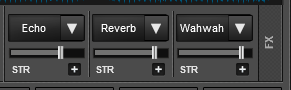 Hold down SHIFT and turn the knob to control the 2nd effect parameter of the selected effect of slot 1 (if available). - FX2 knob: Controls the 1st effect parameter of the selected effect of slot 2.