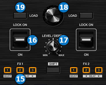 2. FX LEVER. Apply the selected effect to the left/right deck.