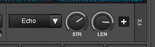 Hold SHIFT down and then use this button, to enable/disable the 2nd effect button of the selected effect (if available). - FX1 knob. Controls the 1st effect parameter of the selected effect.