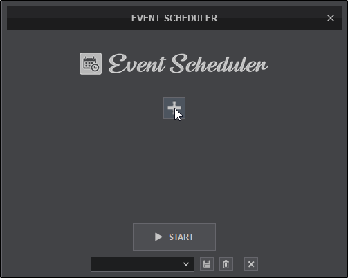 - EVENT MANAGER. Provides the ability to save an Event Schedule by adding a name into the text box and clicking the save icon. Using the drop down provides access to select any previously created events that have been saved. Clicking on the trash can icon will delete the event that is in focus (selected).