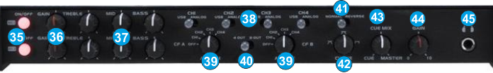 1. MIC ON. Turn On/Off the Microphone Inputs 1 and 2 of the unit.