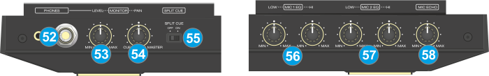 MIC ECHO. Use this knob to apply an Echo Effect on both Microphone Inputs.