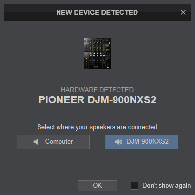 DJM-900NXS2 has a pre-defined Audio setup and a special button in the AUDIO tab of Config to provide that. Alternative Audio setups can be applied in the same window.