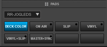- Click on the Pads page select button on either deck and select either the RR-JogLeds or the RR-Settings page.