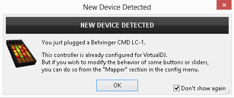 A Pro Infinity or a PLUS License is required to fully use the Behringer CMD LC-1. Without any of the above Licenses, the controller will operate for 10 minutes each time you restart VirtualDJ.