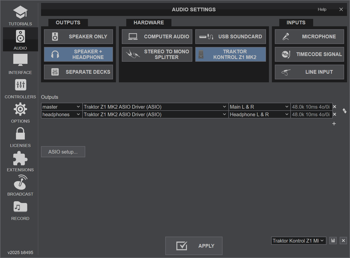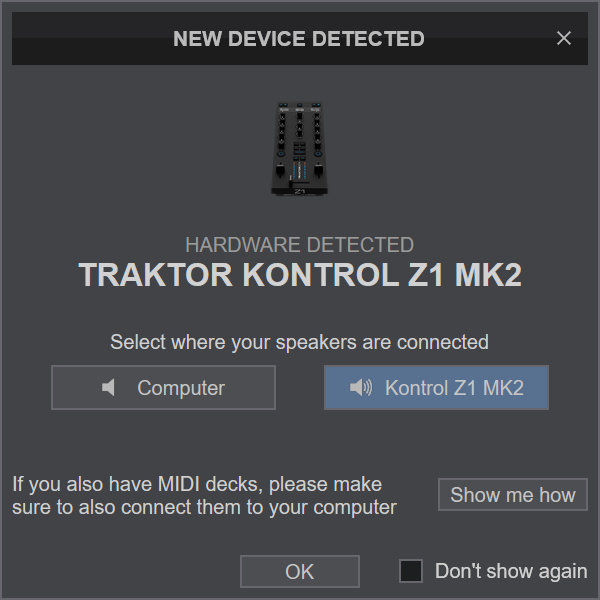 Click on the "Kontrol Z1 MK2" button in order VirtualDJ to apply the pre-defined audio configuration for your device.
