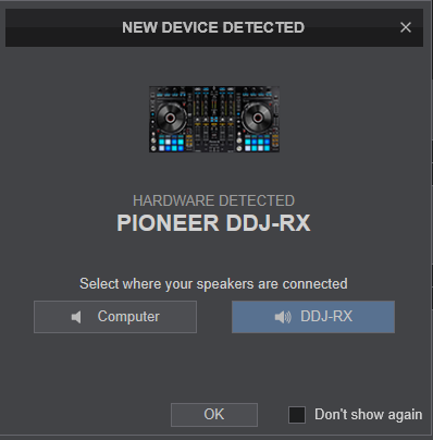Click on the DDJ-RX button and VirtualDJ will automatically create and apply the default audio configuration using the built-in audio interface of the device