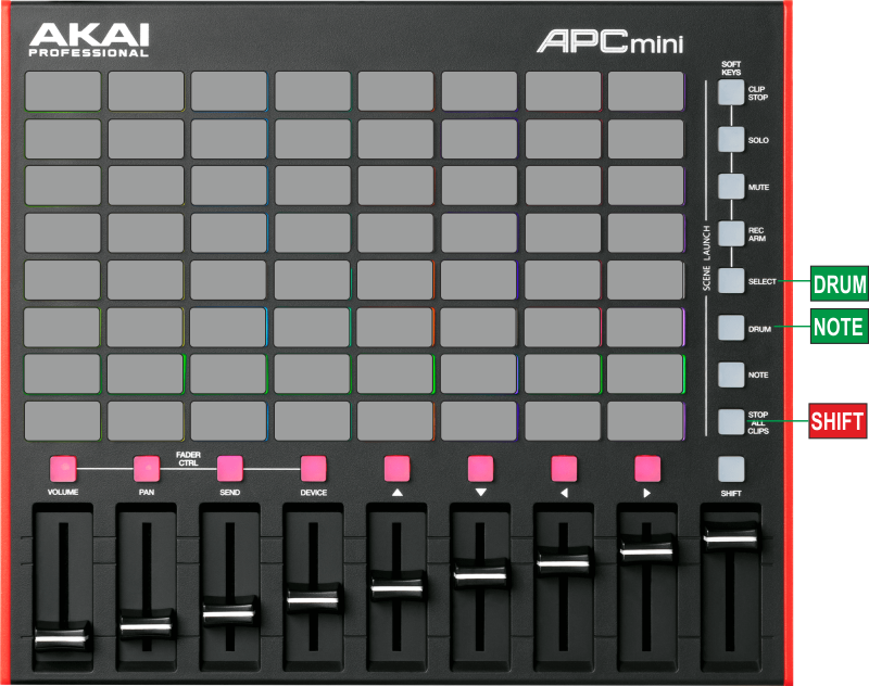 The device is offering 3 Hardware Layers (modes), offered by pressing SHIFT and DRUM or NOTE buttons.
