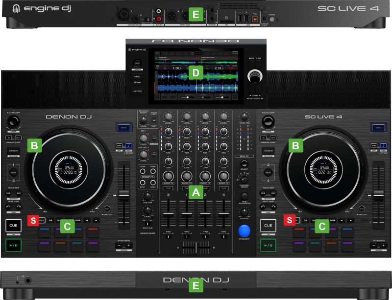 S SHIFT: Press and hold this button to access secondary functions of other controls on the SC Live 4