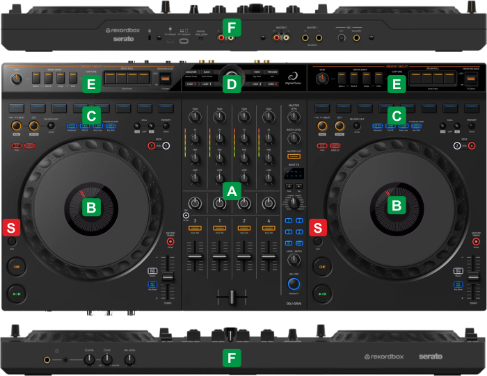S SHIFT : Press and hold this button to access secondary functions of other controls on the DDJ-GRV6