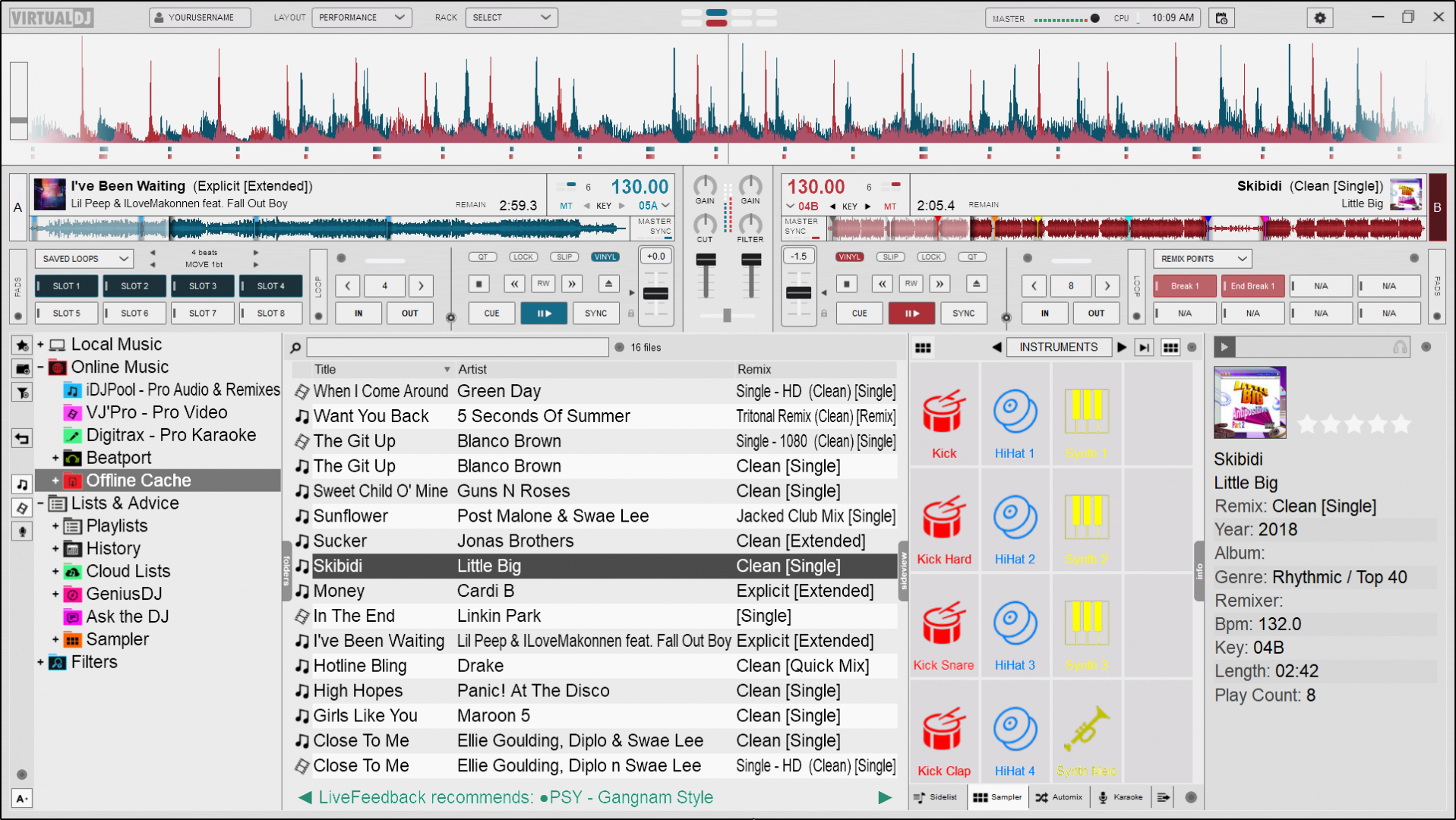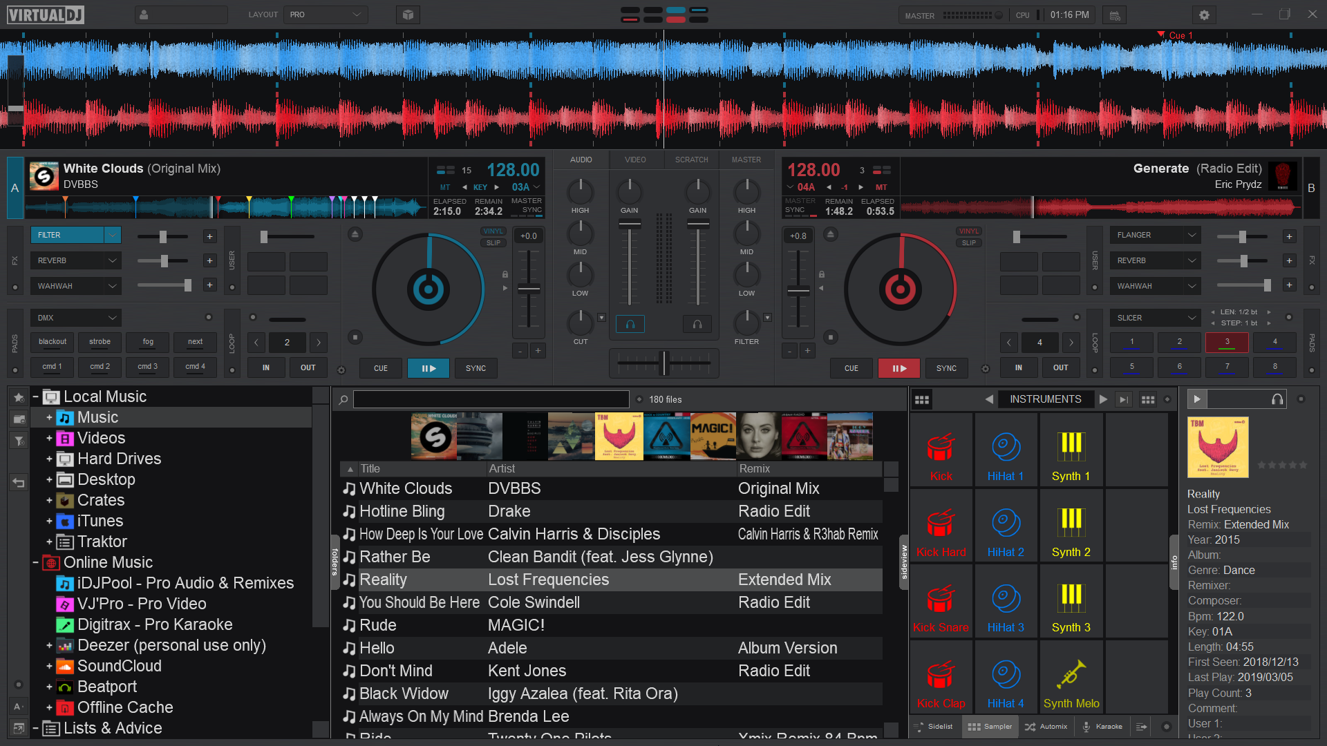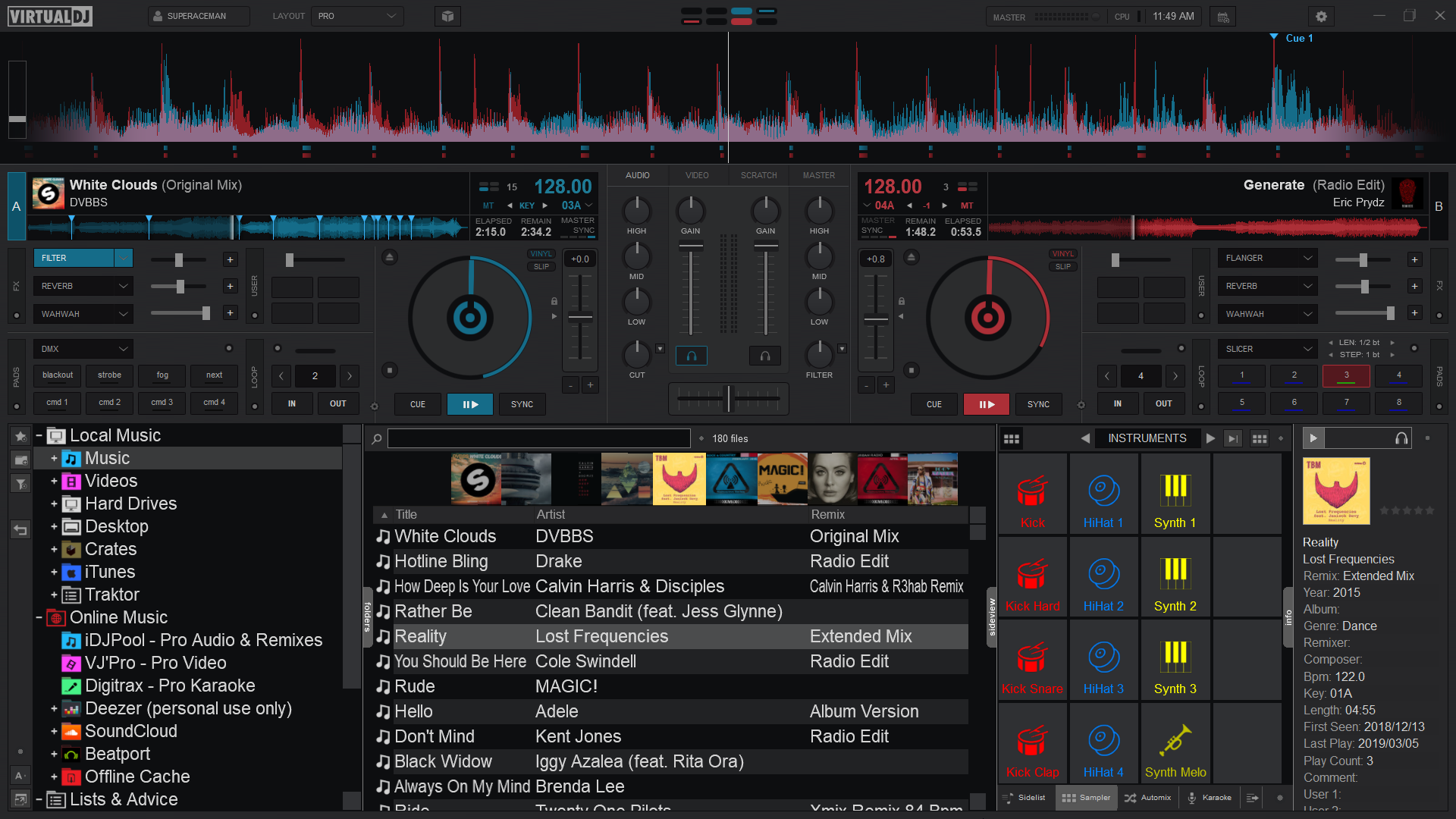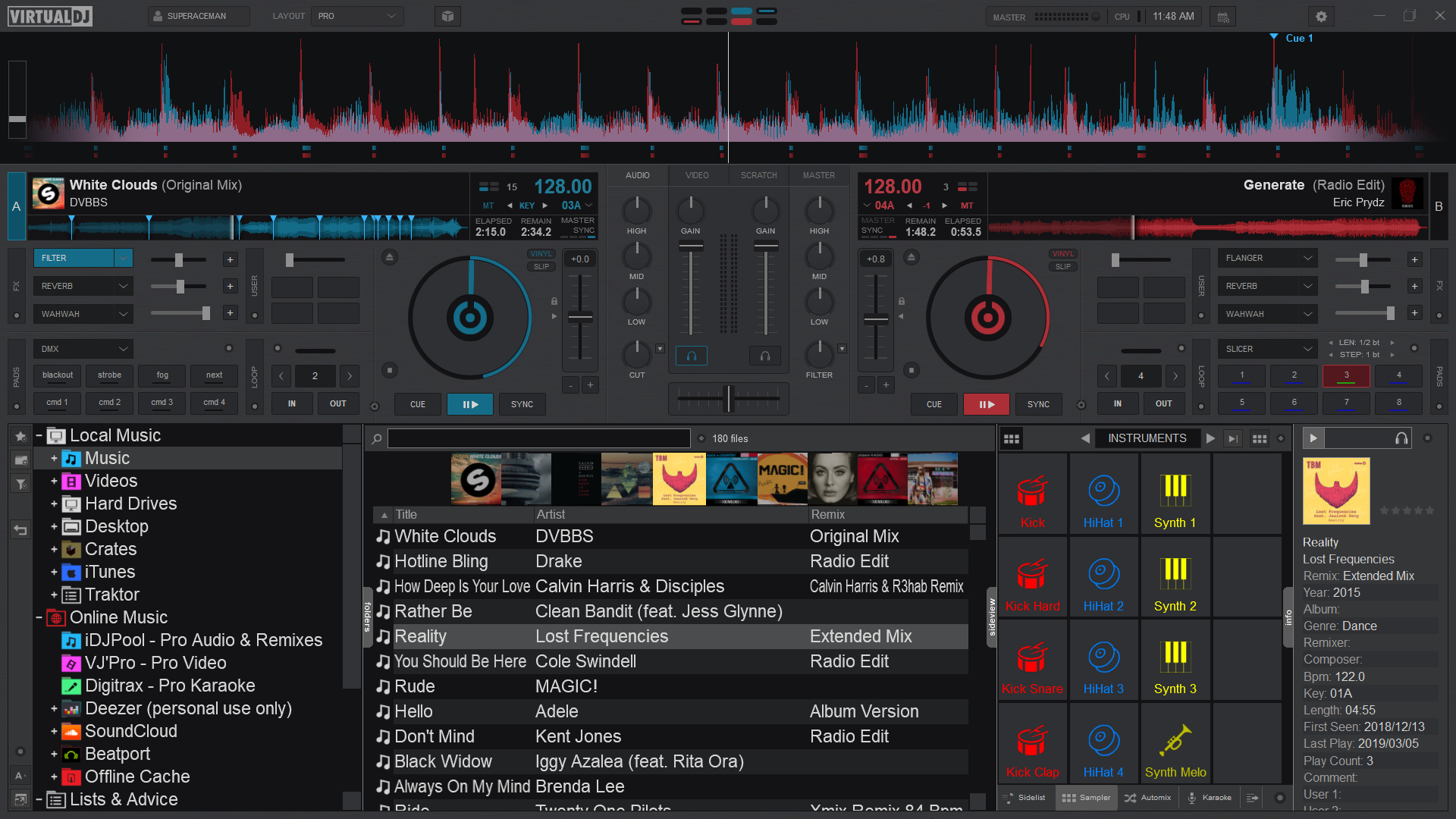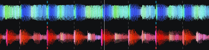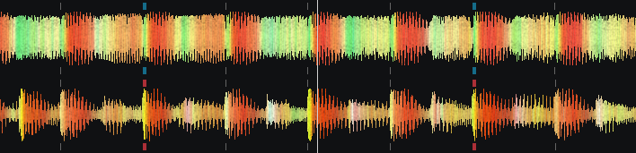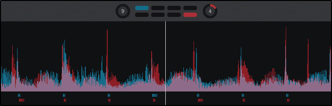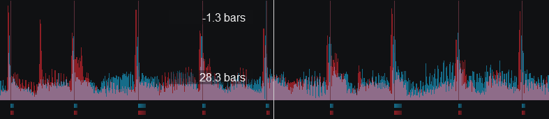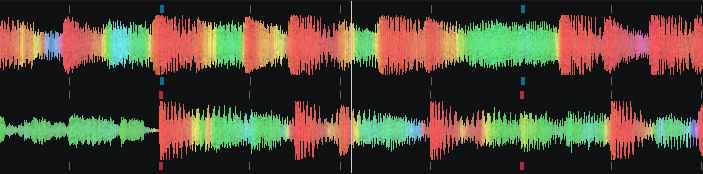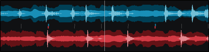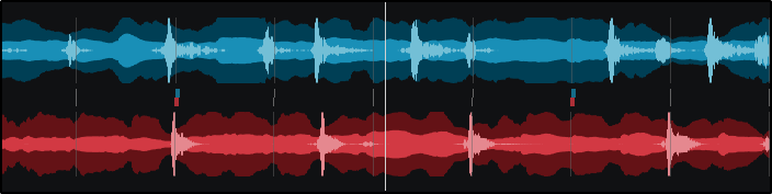 Rhythm Enhanced Waveform w/Grid Lines and Bar Counter Deck LayoutChanges the size and position of the decks. 3 Options are available; Full, Compact (default) and Small. When the Full option is selected, other characteristics of the layout can be changed such as the jogwheels (See Pro Layout).
