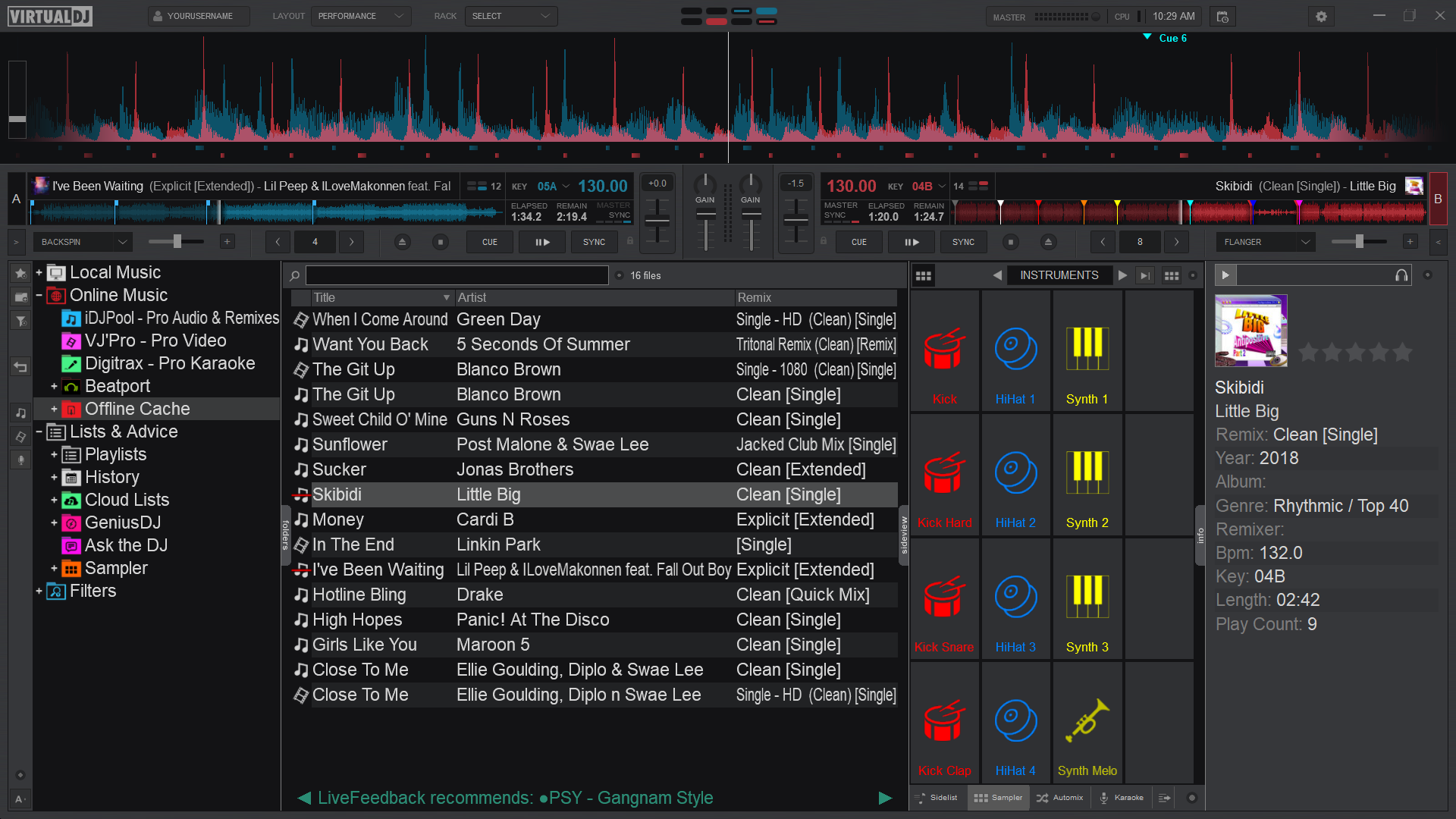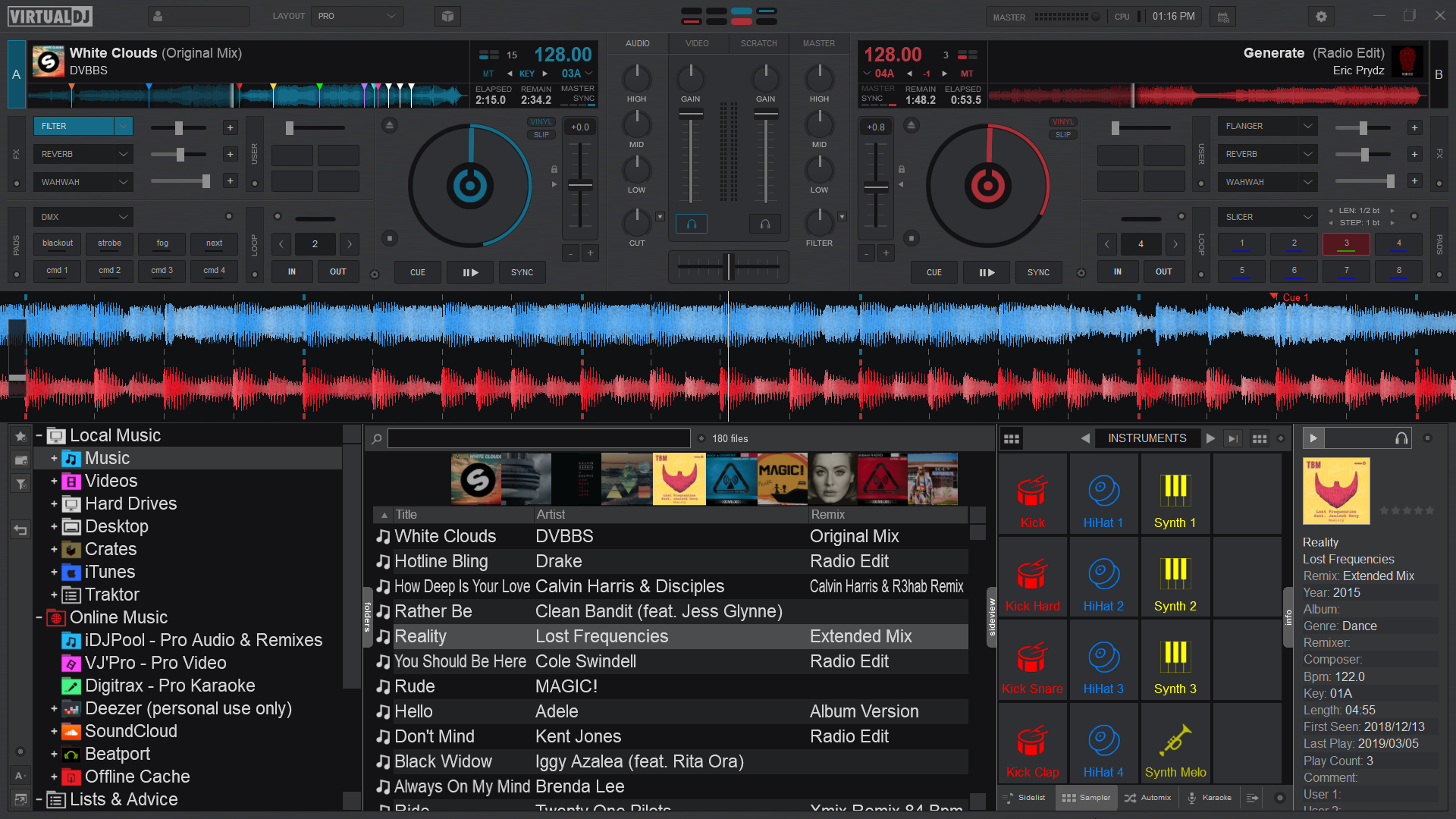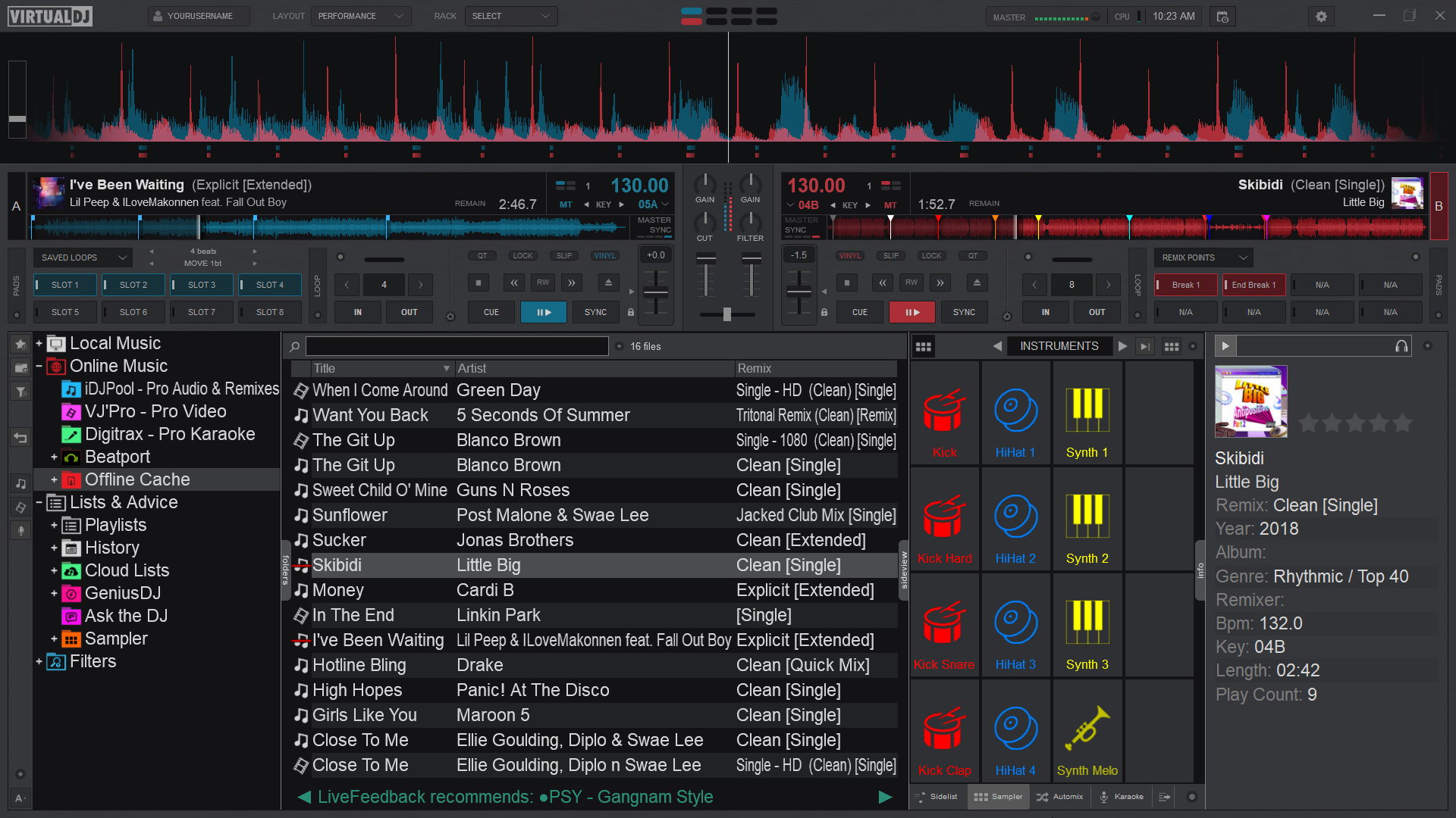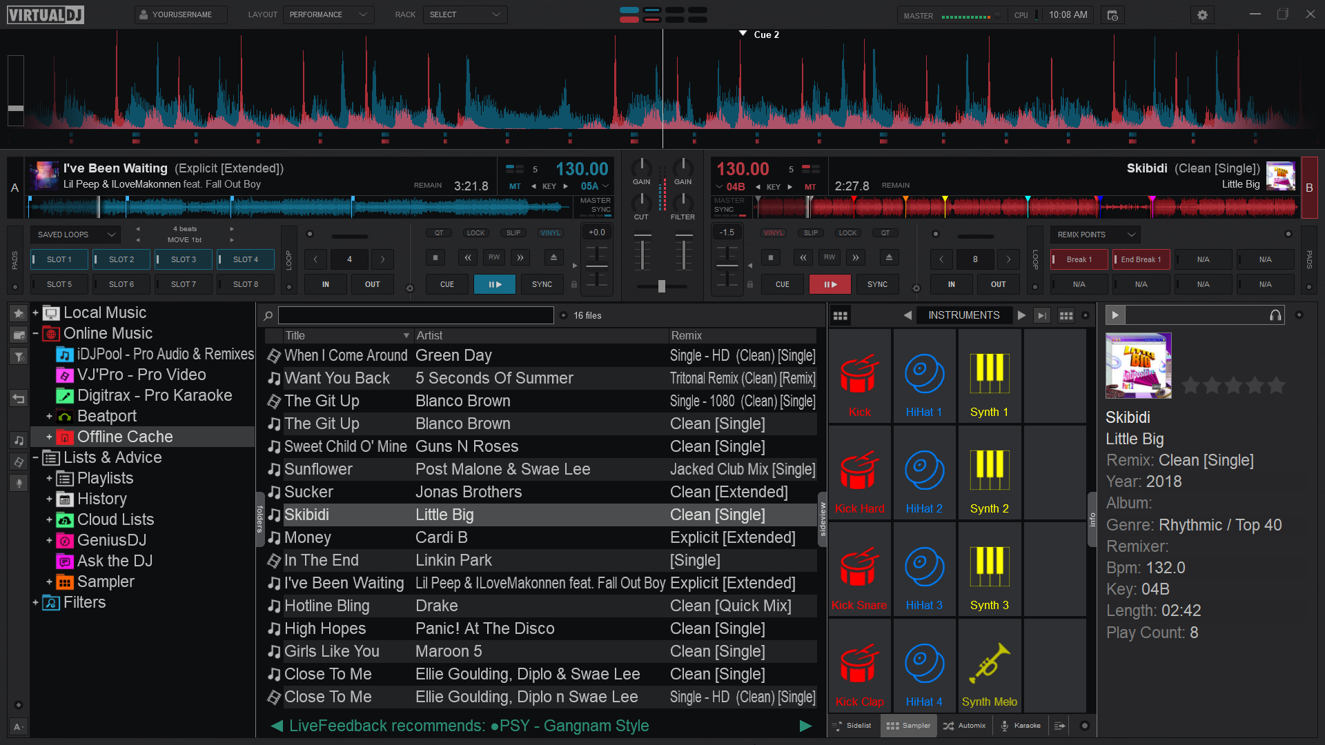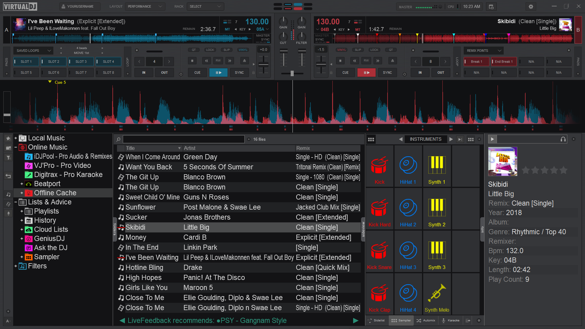Rhythm Enhanced Waveform w/Grid Lines and Bar Counter Deck LayoutChanges the size and position of the decks. 3 Options are available; Full, Compact (default) and Small. When the Full option is selected, other characteristics of the layout can be changed such as the jogwheels (See Pro Layout).