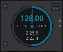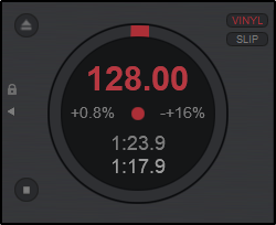 Jogwheel DisplayChanges the look of the jogwheel. 2 options are available; Turntable Look(default) and Spinner Look. Additional options for cover art display are also given for each look; None, Small, or Large(default).