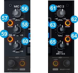 - MIC1/2 TONE. Use this knob to adjust the Tone of both Microphone Inputs.