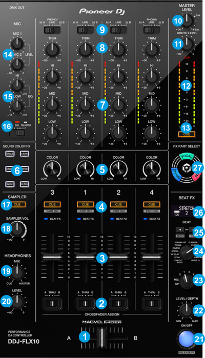 - BOOTH MONITOR. Adjust the level of the Booth Output of the DDJ-FLX10.