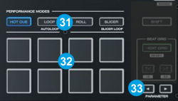 When one of the primary modes is selected, press the same Pad mode button again (2nd press) to get one of the secondary Pad modes - CueLoop, Manual Loop, BeatJump and KeyCue.