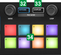 The 8 RGB performance Pads offer different functionality depending on the selected mode and the assigned Pads page. See further details in VirtualDJ Manual - Pads