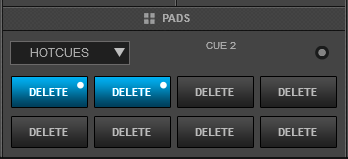 Press the CUES mode button to set the PADs to HotCue mode (the led of the CUES button will become red). The Hotues page will be then selected and displayed on the Pads section of the VirtualDJ skin