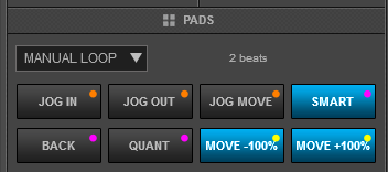 Pad 4 to enable/disable Smart Loop. When Smart Loop is enabled (default status), using Loop In and Loop Out buttons to trigger a Manual Loop, will result of a seamless loop (track will stay on beat)