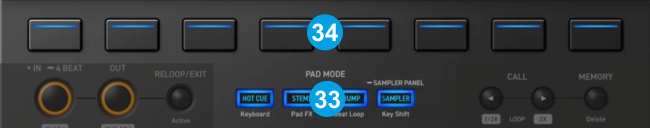 - PAD MODE. Press any of the 4 available Pad mode buttons to set the Pads to Hotcues,
