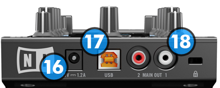 - MASTER OUTPUT CONNECTORS: Use these connectors to connect your device on another mixer or an amplifier