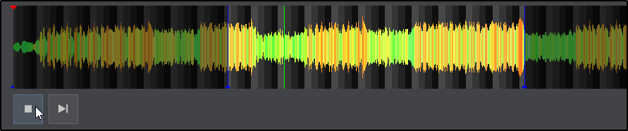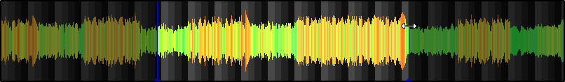 - Two blue lines will appear, one at the beginning and one at the end of the file indicating the length of the sample. Use a mouse wheel to zoom in/out of the waveform, to focus on the part that is to be edited. Move the blue vertical lines to define the part of the file that is to be kept as the Sample.