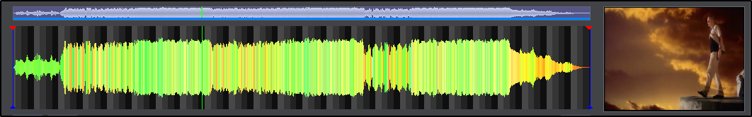 If a video sample or track is opened with the Sample Editor, an additional Video preview window will be displayed at the end of the waveform. Hovering the mouse to any position of the waveform will display that frame in the preview window. Define the area of the video to be sampled with the blue start and end indicators (see Using An Existing File).