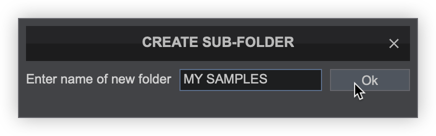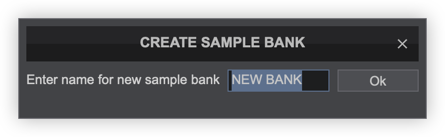 Right-click on the folder and select Create new sample bank... - A pop-up box will appear to give the new sample bank a name. Type in the preferred name for the bank and click OK or press enter on your keyboard.