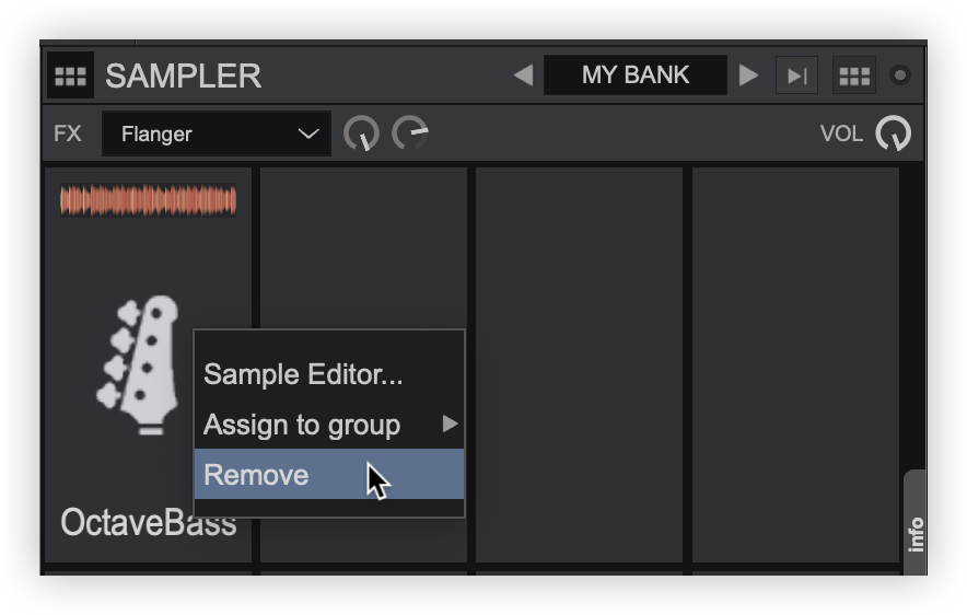 Full - Large image with no textShow effects Provides an FX Tool Bar at the top of the Sampler to apply and control effects as well as the Sampler's volume. Edit bank in browser