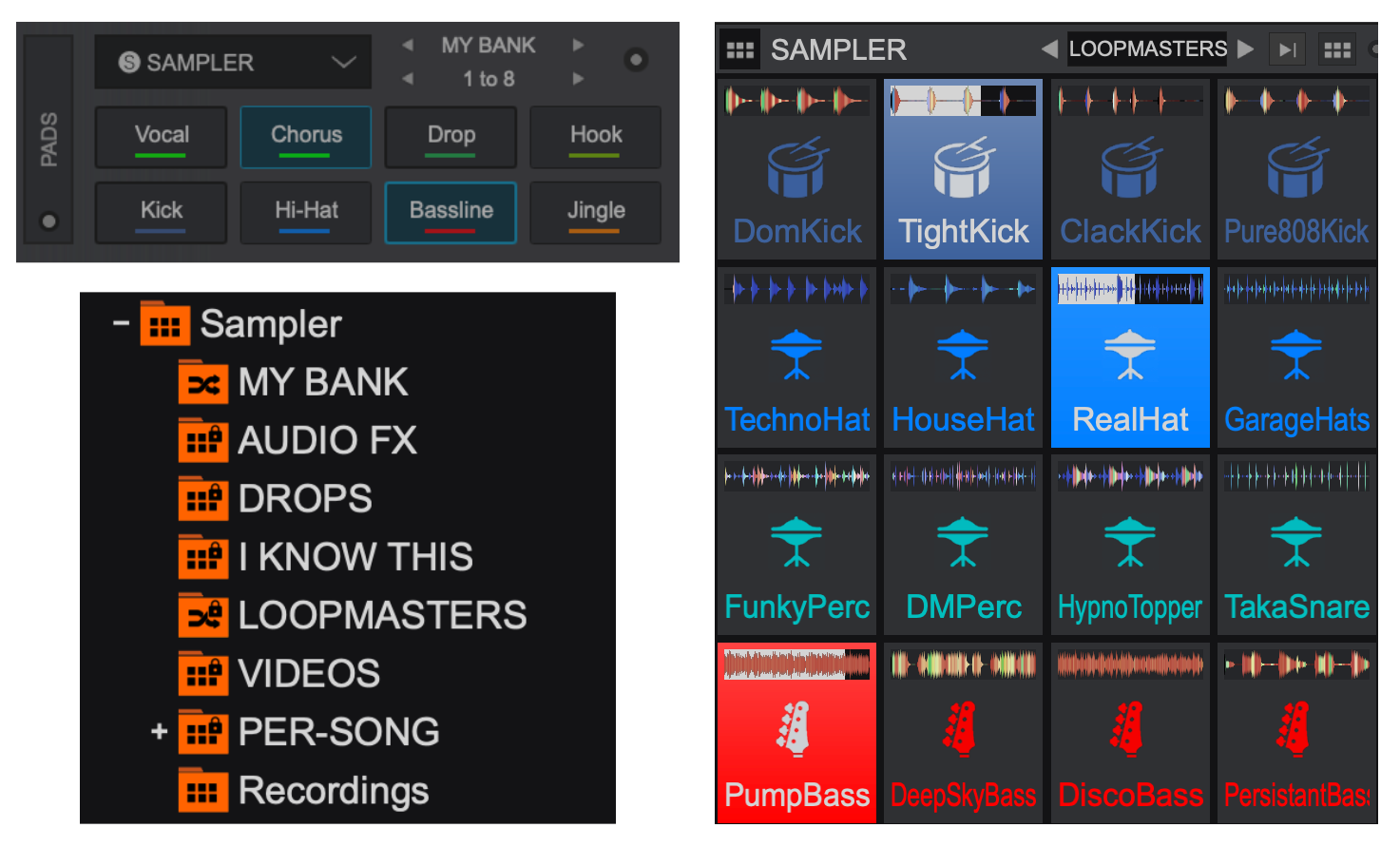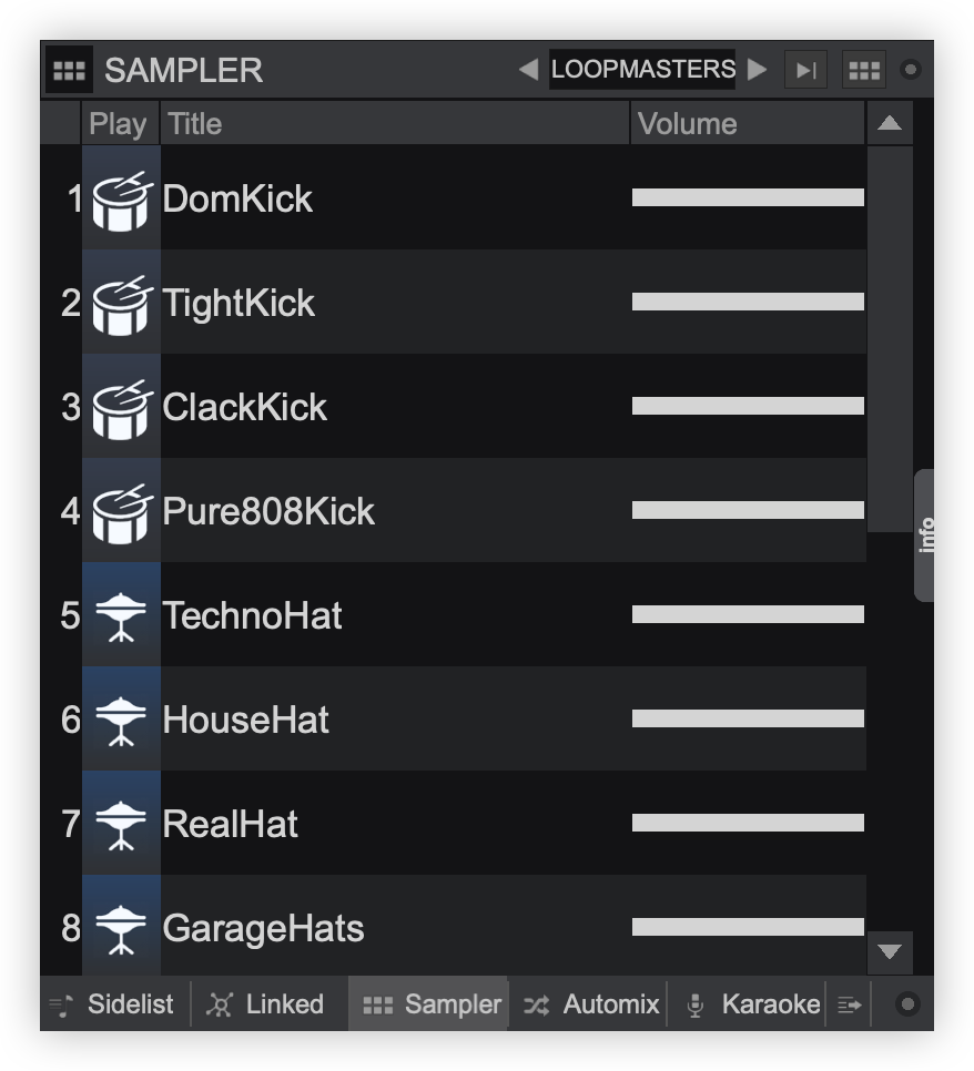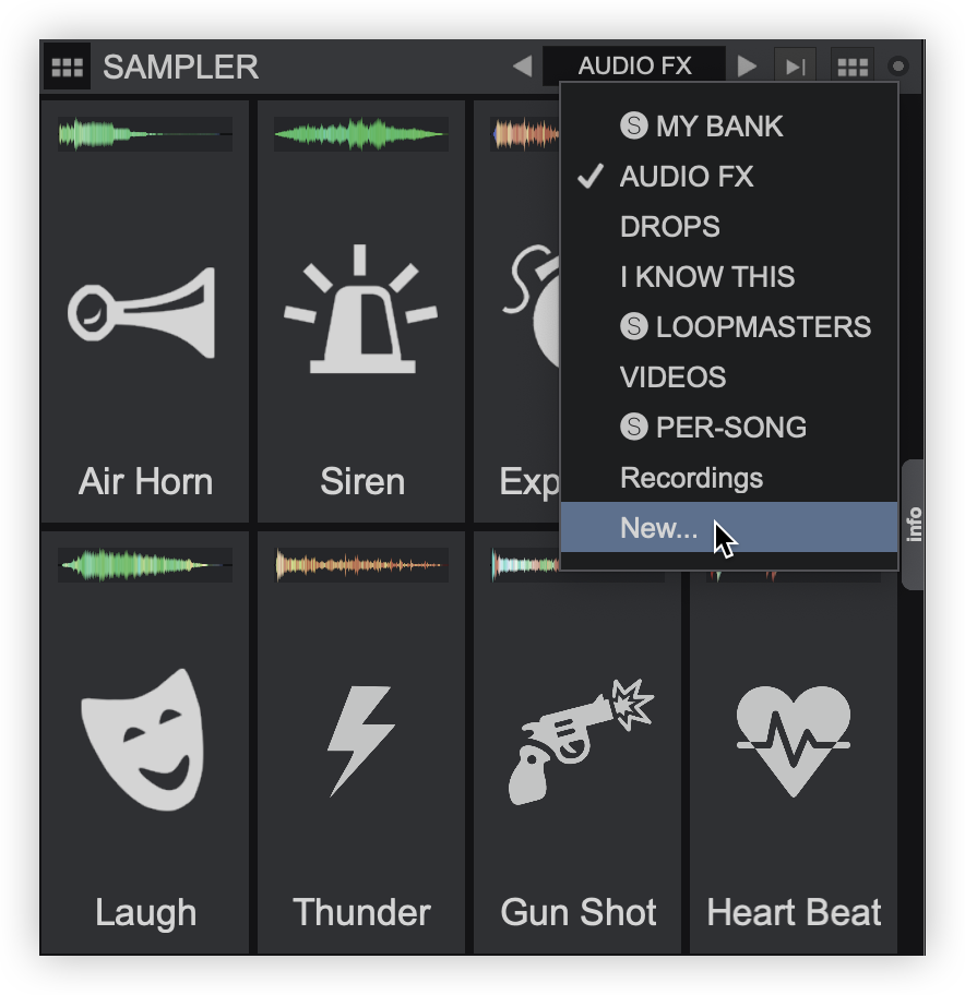 VirtualDJ comes with pre-defined sample banks to get started, as well as empty banks that are workflow specific: