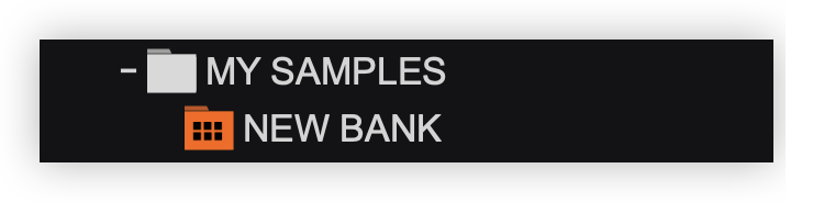 - Once the new sample bank is created it will appear in the Sampler folder in alphabetical order.