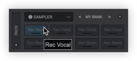 - With a deck loaded select any unlocked bank (like My Bank) from the Pad Bank parameter selection. Find the portion of the track to be recorded and click on the pad to record. The deck does not have to be playing to record a sample.