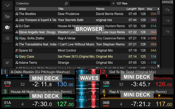 Use the VIEW button to toggle between the selected Decks view and the Large Browser view (with Mini Decks)