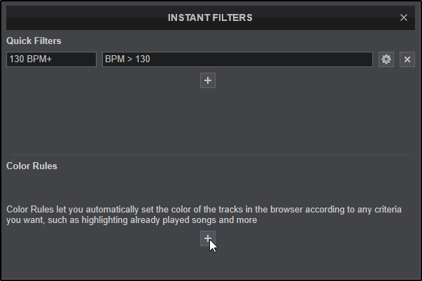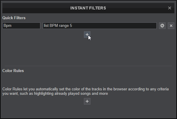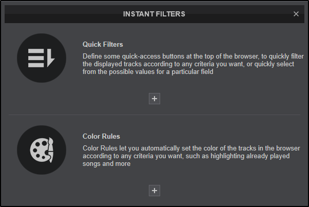 Instant Filters provide an easy to use filter system for quick access to tracks on the fly. Instant Filters are divided into 2 separate categories: