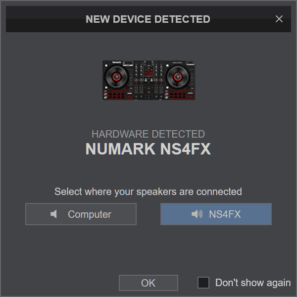 A detection window will appear when the unit is first connected with VirtualDJ.